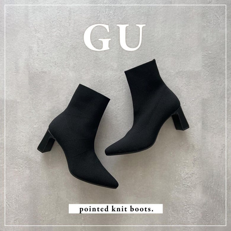 数々の人気アイテムを手がけてきた『GU(ジーユー)』が、この秋冬見逃せないおしゃれなアイテムを発売!その名も「ポインテッドニットブーツ」。足元を華やかかつ美しく彩る、売り切れ必至のブーツです。そんなブーツの魅力といっしょにおすすめのコーデも紹介します。