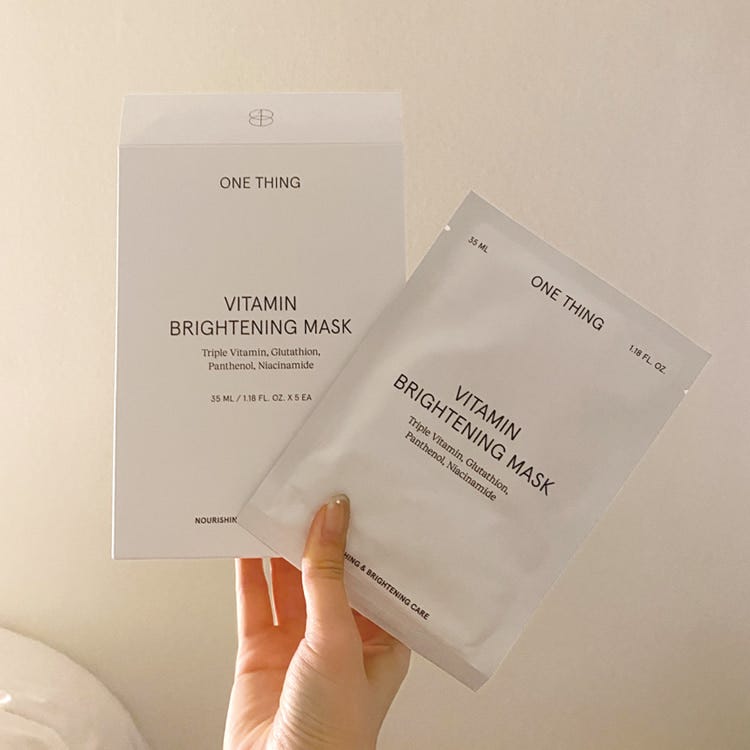 ONE THING:ビタミン ブライトニング マスクパック他では見たことがないくらいにパックの生地が厚くてお肌へのフィット感もすごくいいのでハマりました。私は毎夜、使用しています。