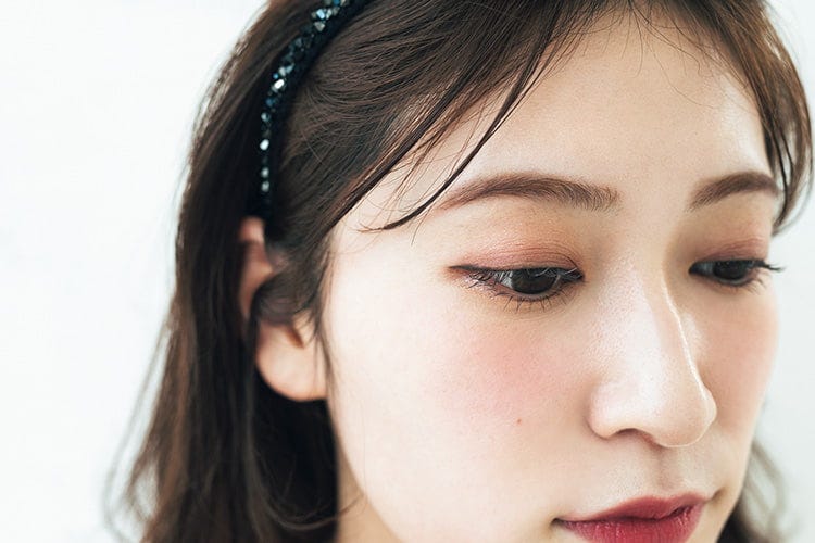 目尻に赤みを盛った横長な目元が色っぽい♡ ほどよい血色感で「お誘い顔」に仕上げる。