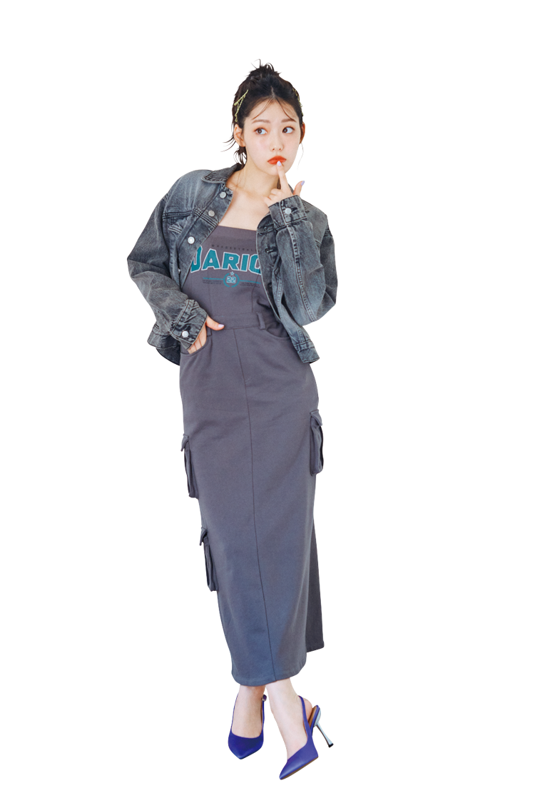 デニムジャケット 5,999円/H&M グレーロゴスエットワンピース 12,100円/Darich(YSM) ヘアピン(5本セット) 990円/アネモネ(サンポークリエイト) パープルバックストラップパンプス 15,900円/チャールズ&キース(チャールズ&キース ジャパン) Item3 ジャージパーカ