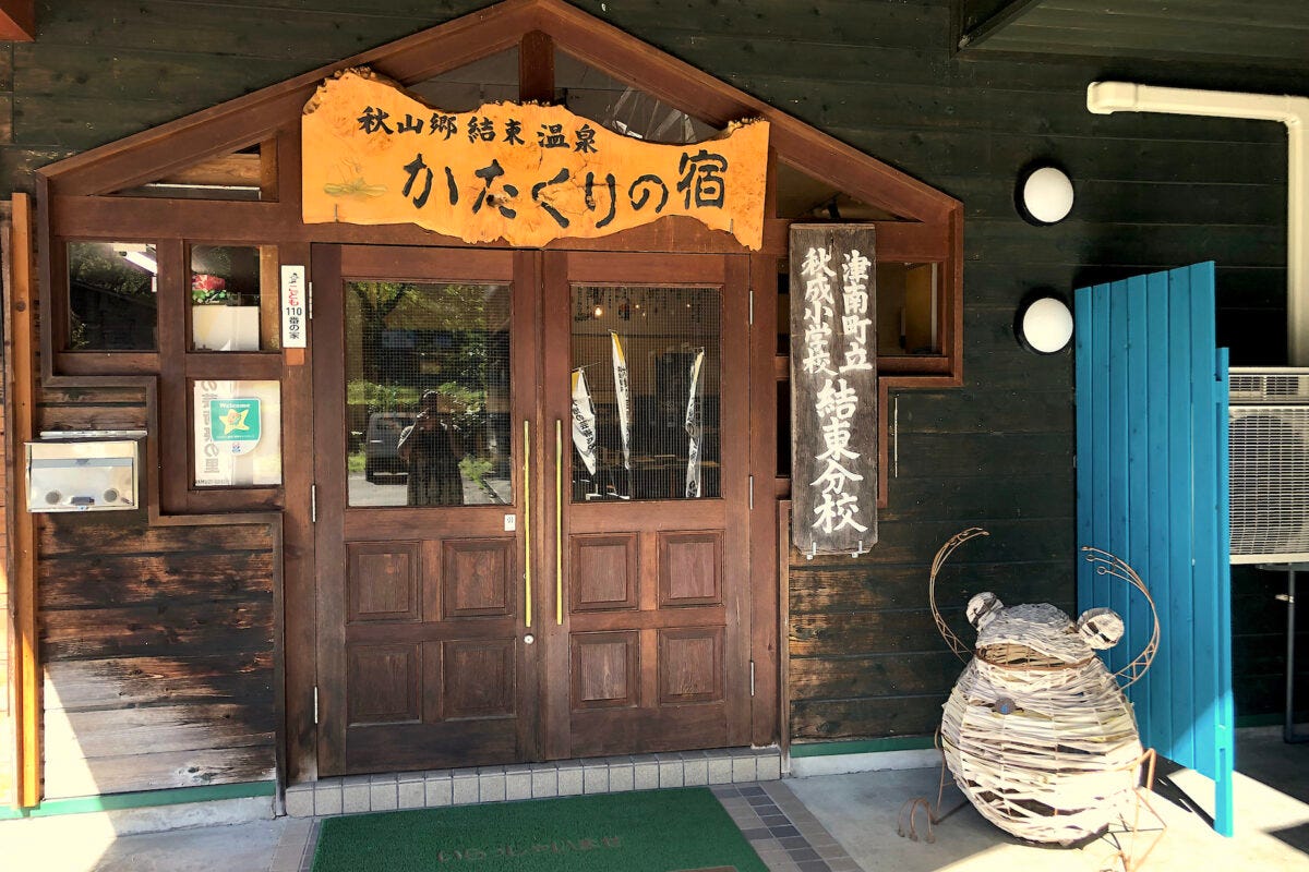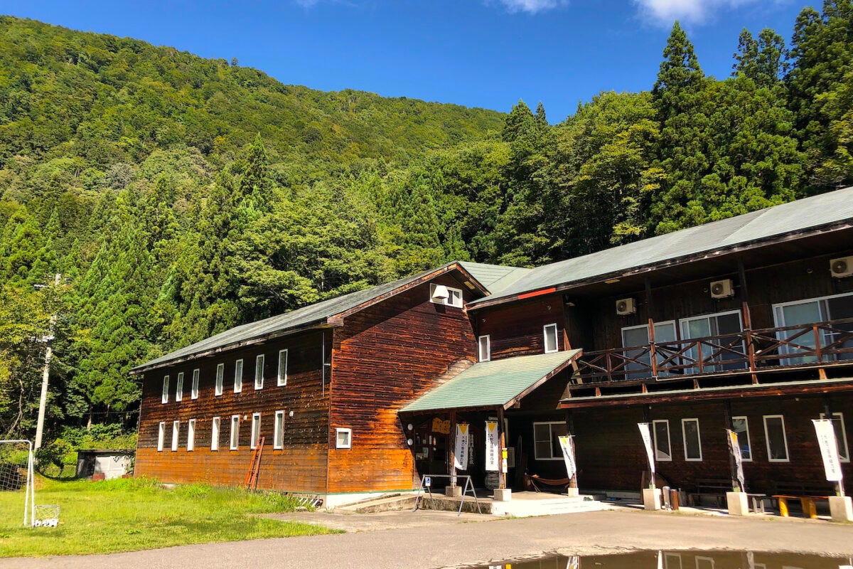 新潟県津南町と長野県栄村にまたがる秘境、秋山郷にある、廃校になった校舎を改築した『かたくりの宿』を紹介します。