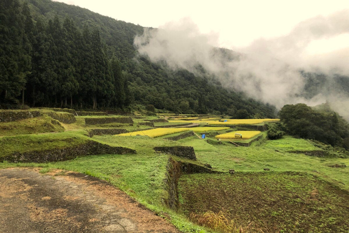 かたくりの宿で提供されるのは、宿から10分ほど歩いたところに広がる 「石垣田」という棚田でつくられたお米。