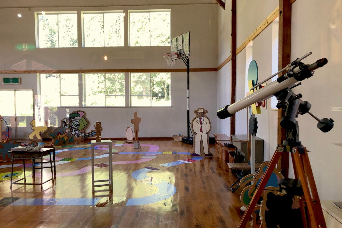 これは、 学校に残されていたものを使いながら みんなで遊べる体験型の作品。ビジターは300円の料金が必要ですが、宿泊客は無料です。
