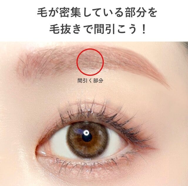 眉毛の印象を和らげたい場合は、毛が密集しているところのみ、毛抜きで間引いて量を調整していきましょう。