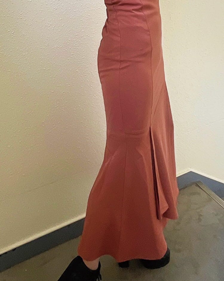 「落ち着いたオレンジ色のワンピースをゲット。RESEXXYで10,000円くらいでした。スカートがマーメイドラインになっていて体のラインをきれいに見せてくれます。