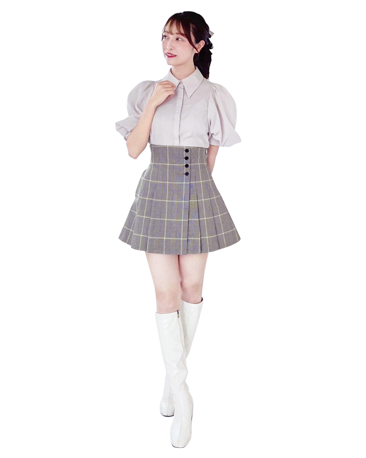 チェックスカートやブーツとあわせてさらに季節感を意識。スカートもSNIDELです♡ 10月は透け感のあるシャイニー素材を取り入れたい!」