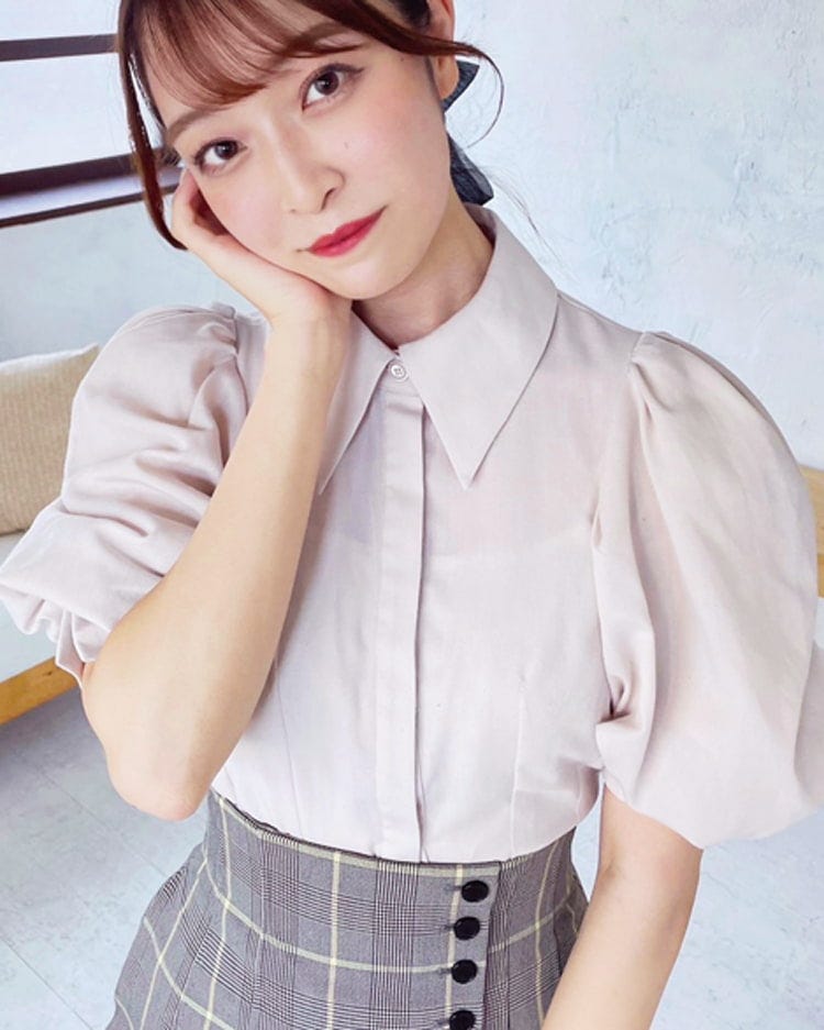 「メインはそでがふわっとしたブラウス。きっちりしている中に甘さがあってお気に入り。SNIDELで約12,000円でした。
