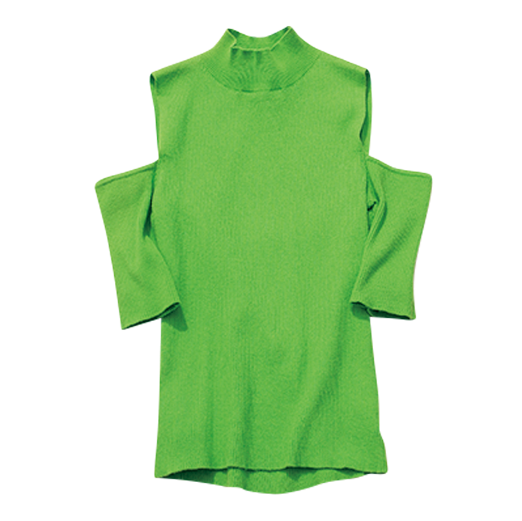 Item1 赤肩あきニット キャミとカーデを重ね着した風なデザインで、肩がチラッ。リブ編みのヘルシーさもちょうどいい。 赤肩あきニット 12,100円/リランドチュール Item2 グリーン肩あきニット 鮮やかなライトグリーンがポジティブなイメージ。二の腕を全部出すより、ハダチラのほうが実は色っぽい。 グリーン肩あきニット 7,700円/AMAIL Item3 ベージュ肩あきニット ボディ