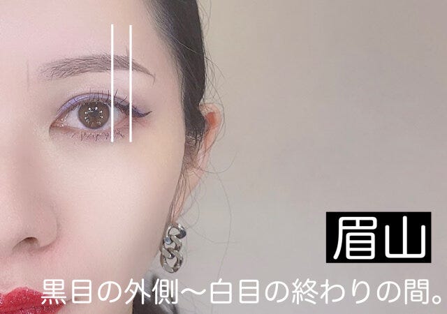眉山は“黒目の外側~白目の終わりの延長線上”に設定するのがおすすめです。