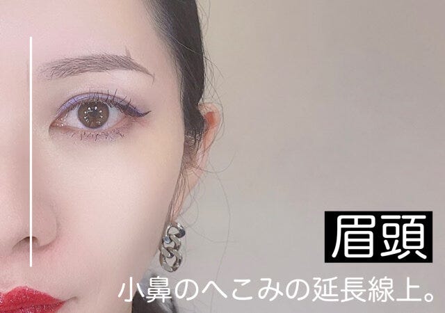 眉頭は「小鼻のへこみの延長線上」に設定するのがおすすめです。