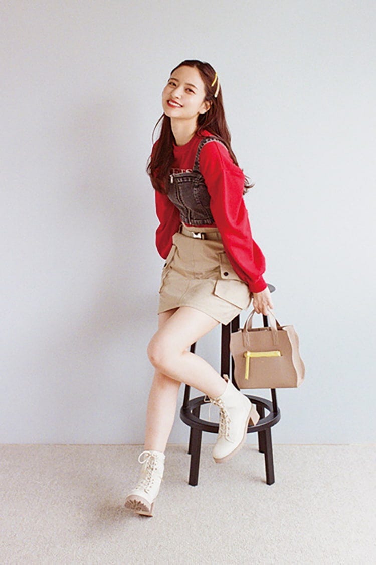 丈短ロゴスエット 2,530円/エムズエキサイト(R1000) デニムセットアップ(ビスチエのみ使用) 9,900円/OLIVE des OLIVE カーゴミニスカート 3,299円/Figments ヘアピン(4本セット) 1,980円/POTETE バッグ 5,390円/ACCOMMODEルミネエスト新宿店 レースアップショートブーツ 12,980円/RANDA Scene2 ブランドとの初打ちあわせ。しっかり見えするコーデにしてみた!