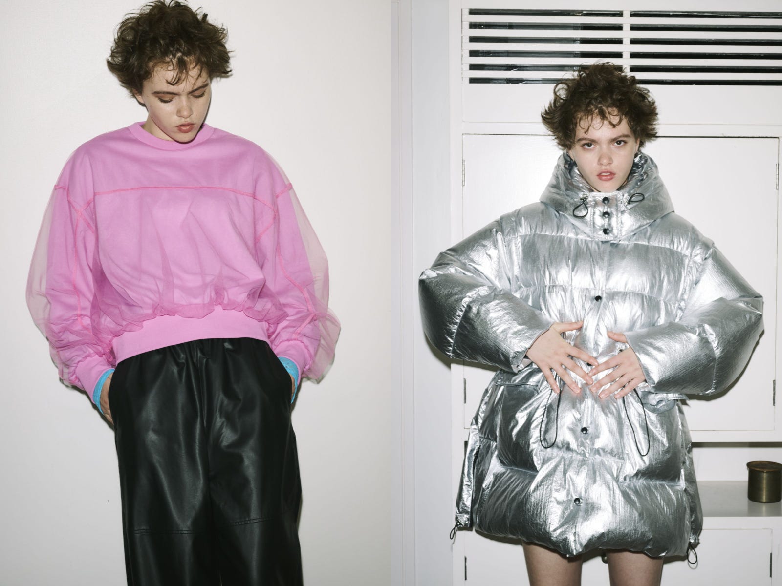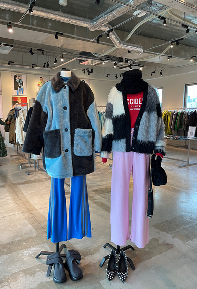 ミディアム丈のアウターは、オーバーサイズのスタジャン(税込み3万9600円)やバイカラーのフェイクファーコート(3万9600円)のほか、ナイロンの中わた入りブルゾンなどがある。2年前から販売しているダブルブレストのオーバーサイズウールコートもロング丈だけでなく、お尻が隠れる短めの丈を初めて企画した。