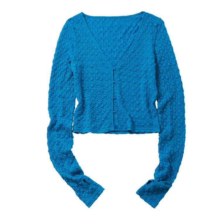 Item1 ブルーカーディガン くしゅくしゅなシワ加工で甘さをひとさじ。着回し力抜群なアイテム。 ブルーカーディガン 9,350円/AMAIL Item2 ブルーメッシュショートトップス まずはコンパクトに青を投入。程よい透け感で女みをアピール♡ ブルーメッシュショートトップス 4,950円/COCO DEAL(ココ ディール) Item3 マルチボーダーニットカーディガン 韓国の人気ブランドもブルー