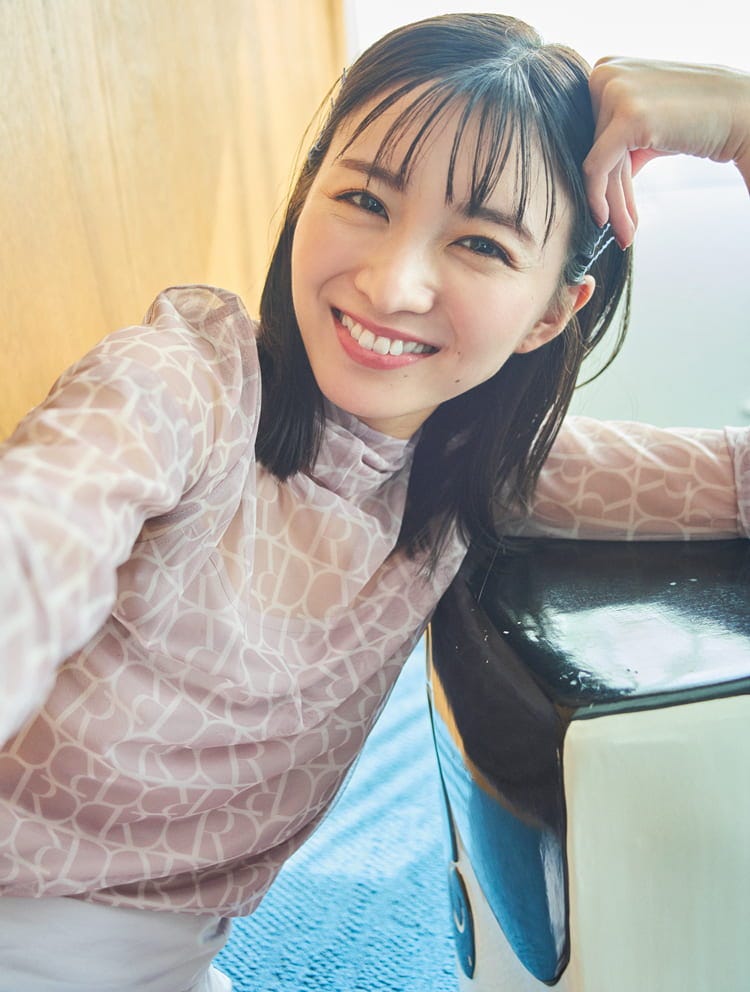 モノグラムフーディーシアートップスとキャミのセット 7,040円、ライトパープルショートパンツ(11月発売予定) 9,240円/ともにrienda(バロックジャパンリミテッド) ヘアピン(5個セット) 990円/アネモネ(サンポークリエイト) 撮影/藤原宏(Pygmy Company・モデル)、上田祐輝(静物) スタイリング/稲葉有理奈(KIND) ヘア&メイク/サイオチアキ(Lila) モデル/岡崎紗絵(本誌専属) 文/小田和希子