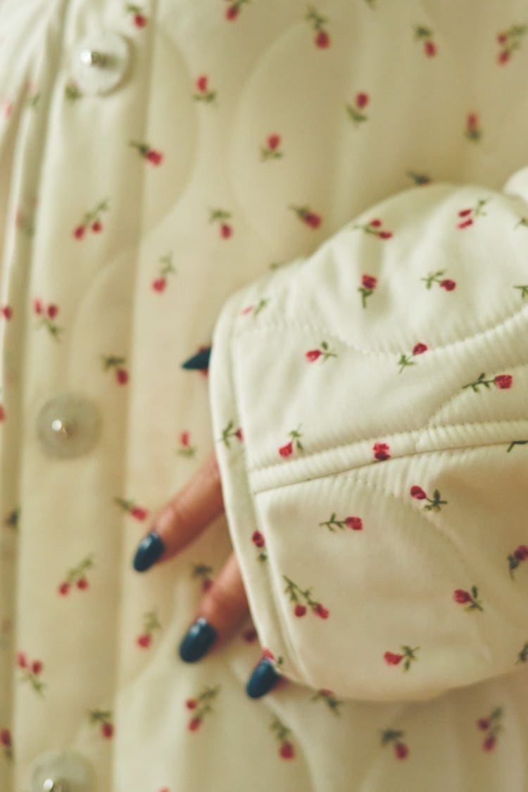 自慢したくなるガーリーディテール。キルティング自体がモチーフになっていたりとこの冬糖度高めに進化中!やわらか〜な素材だからノンストレスな着心地も推せる理由♡