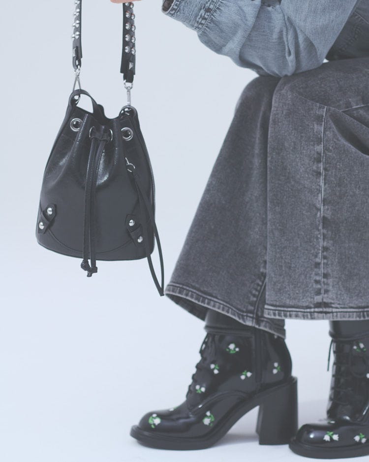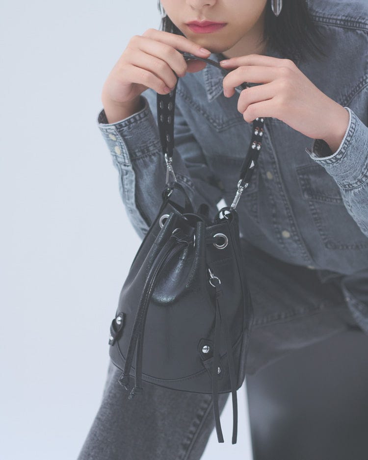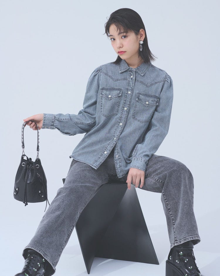 ハンサムな黒小物を主役に持ってくるなら、相棒はデニム一択。バッグや靴、アクセサリーの個性を邪魔せず、軽快にコーデの鮮度を上げてくれる貴重な存在。