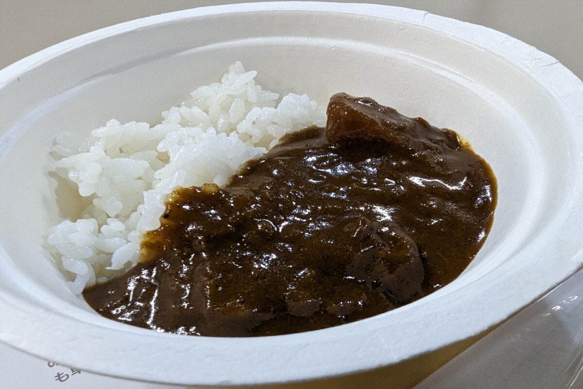 スパイシーなビーフカリーは辛味のほかにスパイスの複雑な香りや、ルーのコクが楽しめ、無料とは思えない美味しさ。