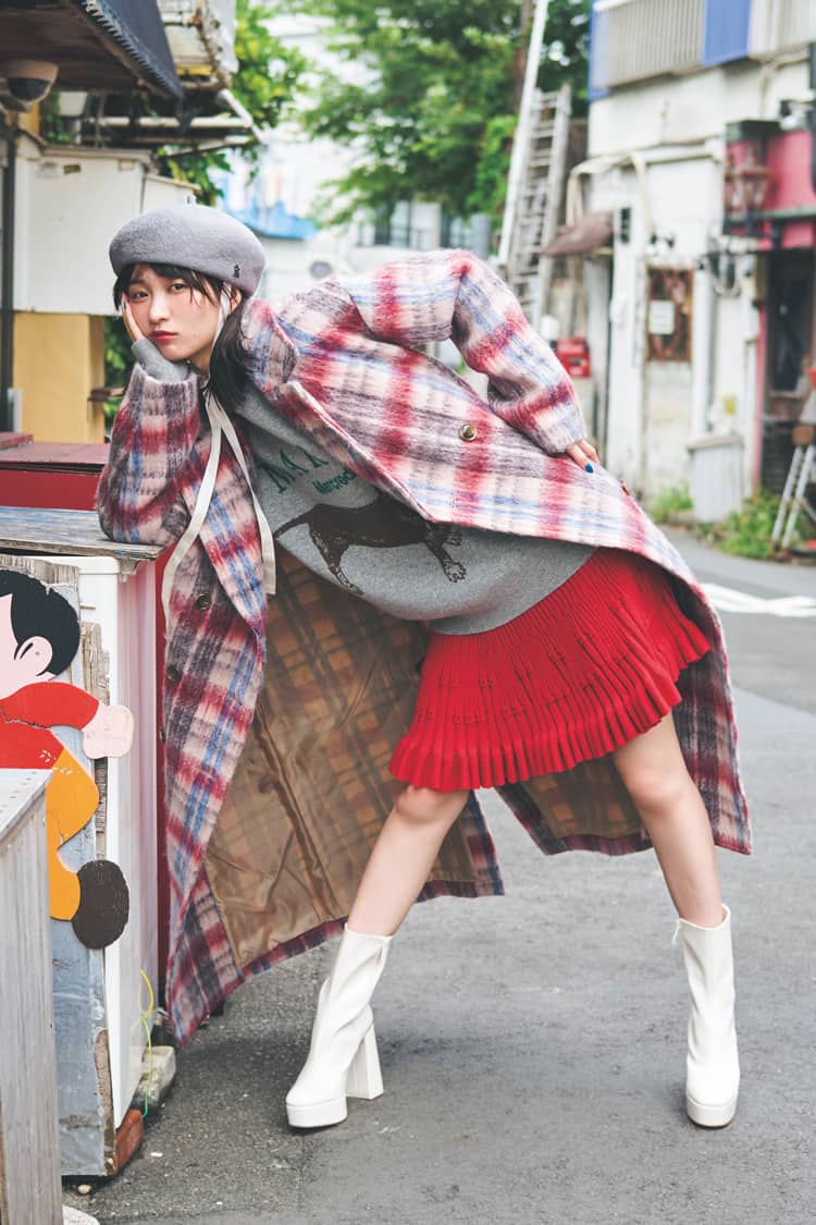 赤チェックロングコート 20,900円/RESEXXY グレーニット 21,900円/Mardi Mercredi(MUSINSA JAPAN) 赤ニットミニスカート 8,690円/COCO DEAL(ココディール) ベレー帽 33,000円/arth(OVERRIDE 神宮前店) ブーツ 14,900円/チャールズ&キース(チャールズ&キース ジャパン) 撮影/峠雄三、葛川栄蔵(hannah)、藤原宏(Pygmy Company)、tAiki、花盛友里 スタイリング/稲葉有理奈、城田望、杉本奈穂(以上KIND) ヘア&メイク/室橋佑紀(ROI)、Mien、サイオチアキ(ともにLila)、?﨑沙世子(io) モデル/加藤ナナ、岡崎紗絵、髙橋ひかる、佐々木久美、村瀬紗英(以上本誌専属) 撮影協力/EASE(髙橋分)