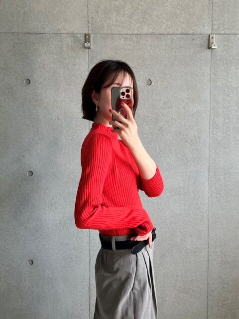 リブセーターだけだとだいぶ大人っぽい印象に。コーデは全て一緒なのに、どれを着るかでだいぶ印象が変えられます。
