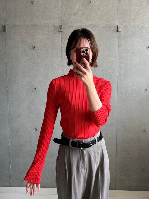 スタイル1 リブセーターのみだと大人っぽい印象に