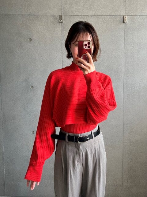 クロップドセーターだけで着るとこんな感じ。袖はかなりのドルマンスリーブ。