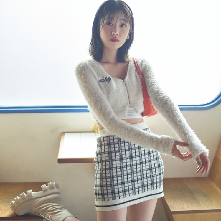 シャギーキャミソールとカーディガンのセット 7,590円/EMODA ルミネエスト新宿店 Item3 チェック柄プリーツミニスカート