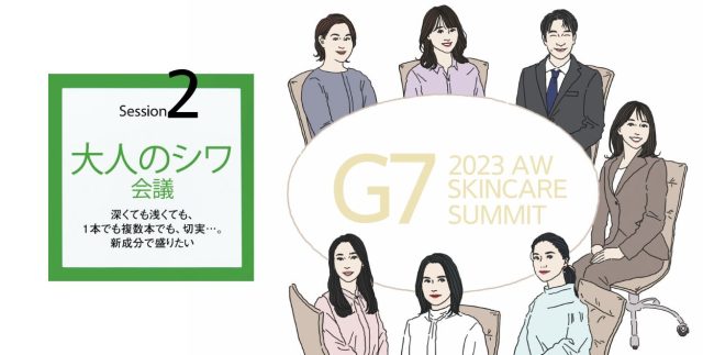 緊急招集! 「G7スキンケアサミット-美容首脳会議-」 今回のテーマは“シワ改善”。深くても浅くても、1本でも複数本でも、切実…。大人の肌悩み解決のため、美容賢者たちが解決案を話し合った。