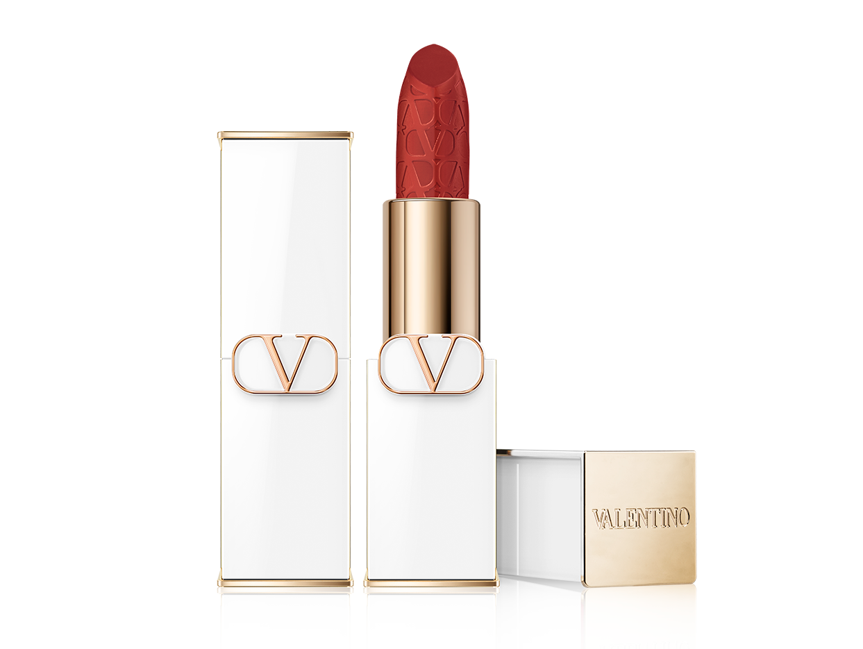 「ロッソ ヴァレンティノ サテン パーティエディション」6,820円/限定1色、「ロッソ ヴァレンティノ マット パーティエディション」各6,820円/限定2色(写真は111A) リップスティックには、ラグジュアリーな塗り心地と鮮烈な発色で新しさを感じる「サテン」と、やわらかくクリーミーなベルベットフィニッシュで洗練された仕上がりを叶える「マット」がそろい、それぞれ限定ホワイトパッケージで登場。バレットには、メゾン ヴァレンティノのアイコニックな“イコノグラフ パターン”があしらわれています。