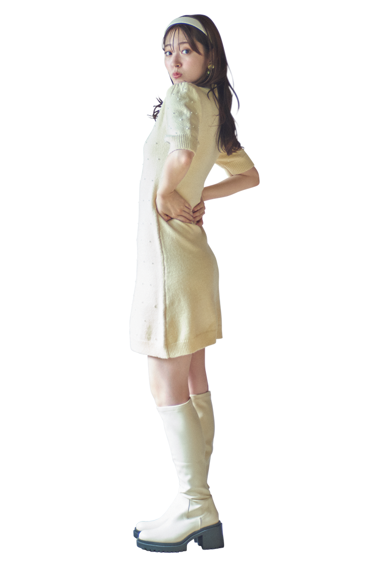 「ミニ丈ボトムも多い今季はロングブーツが絶対使える!全身の3分の1を占めるからこそライトカラーでトーンアップさせて」byあいり