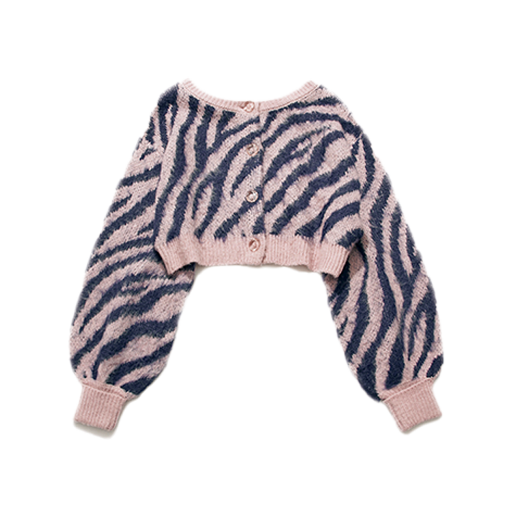 ピンク×ネイビーの甘め配色でクールなゼブラ柄って組みあわせが新鮮。シルエットが可愛いゆったりめなそでがポイント!