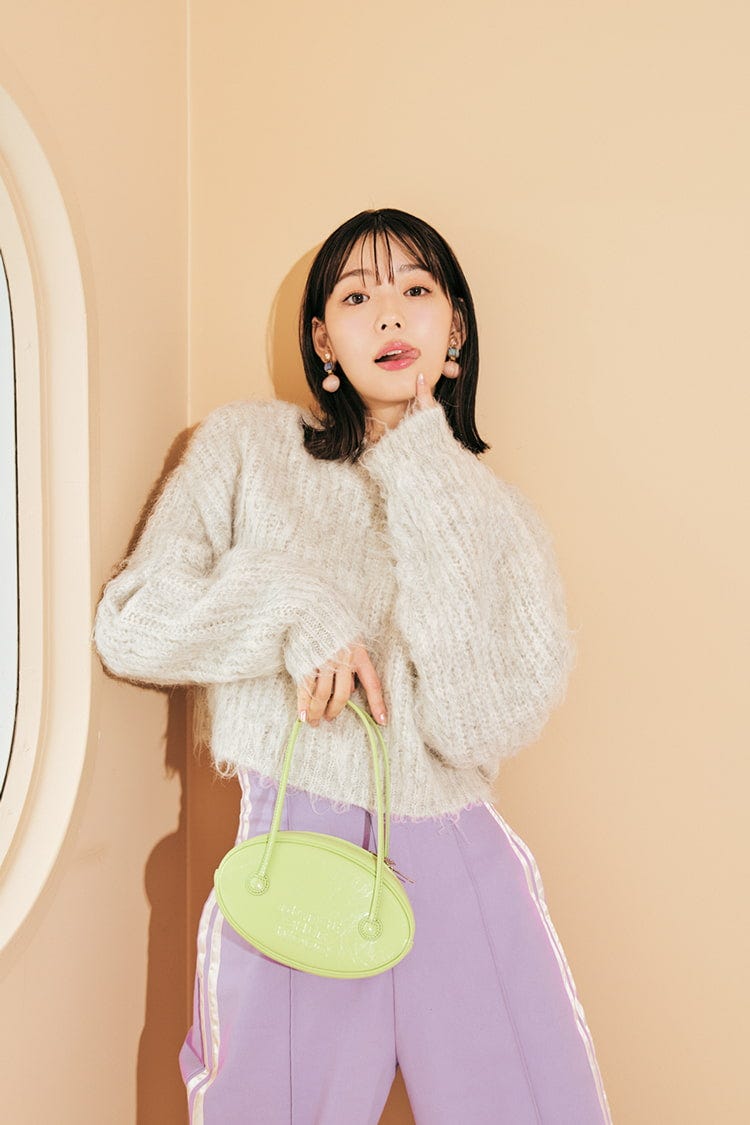 グレーショート丈ニット 3,299円/WEGO パープルラインパンツ 13,750円/AMAIL イヤリング 28,620円/アビステ ミニバッグ 26,079円/MARGESHERWOOD(MUSINSA GLOBAL STORE) 撮影/tAiki スタイリング/城田望(KIND) ヘア&メイク/後藤若菜(ROI) モデル/髙橋ひかる(本誌専属)、中村里帆 文/天井玖瑠海 撮影協力/PROPS NOW