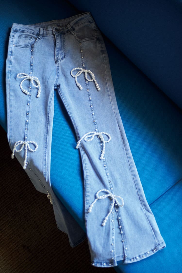 パールリボンデニムパンツ 6,930円/MORE self LOVE デニムティアードスカート