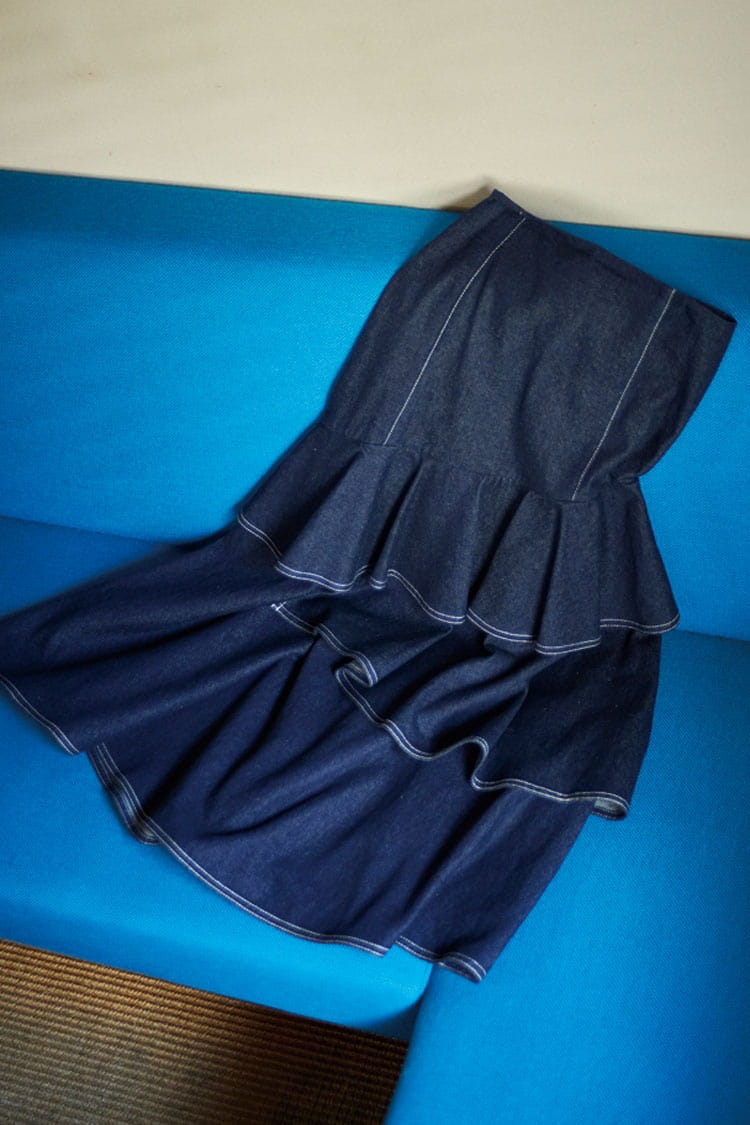 デニムティアードスカート 14,300円/WILLSELECTION ルミネエスト新宿店 撮影/藤原宏(Pygmy Company) スタイリング/稲葉有理奈(KIND) ヘア&メイク/サイオチアキ(Lila) モデル/岡崎紗絵(本誌専属) 文/小田和希子