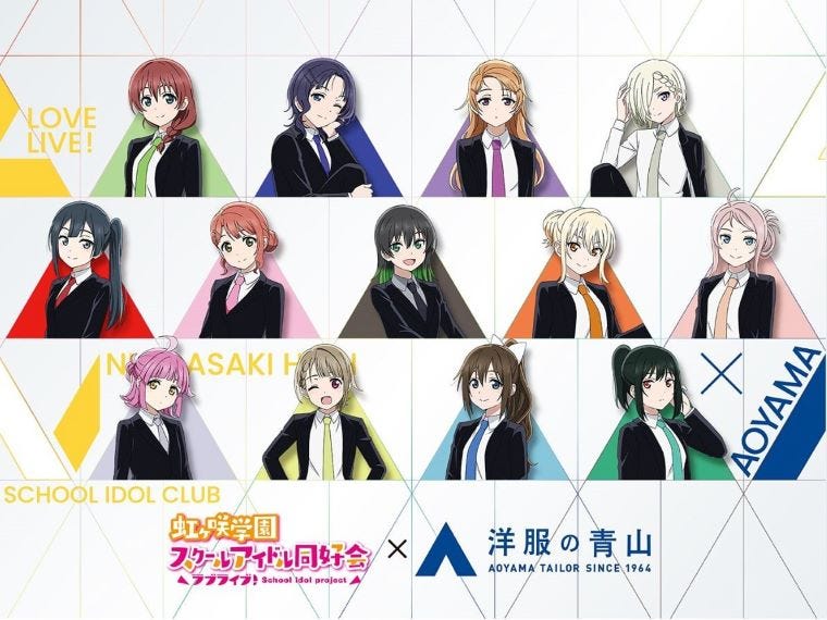青山商事は24年5月に創業60周年を迎えるのを記念し、「洋服の青山」と人気テレビアニメ『ラブライブ!虹ヶ咲学園スクールアイドル同好会』の協業企画を打ち出している。