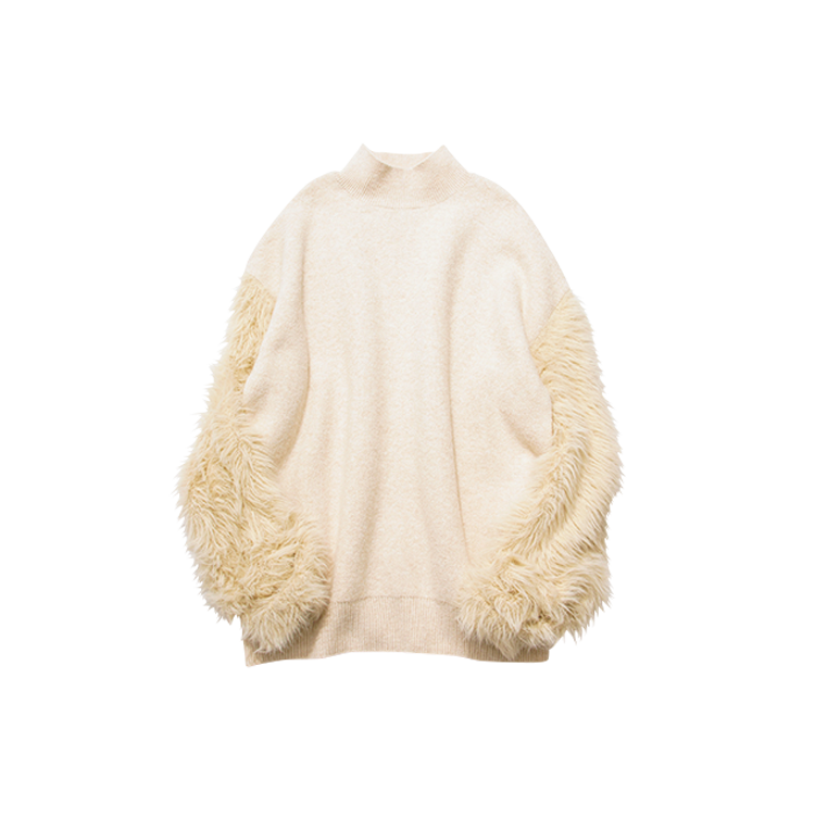そで部分は、ファーくらいモフモフなシャギーニット。萌えそでにしたときの手元が可愛すぎ♡