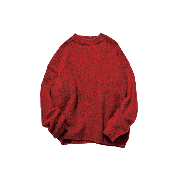 レトロっぽさが盛れる赤のオーバーサイズニット。モヘアライクな繊細なもふもふ感でぷりかわに♡