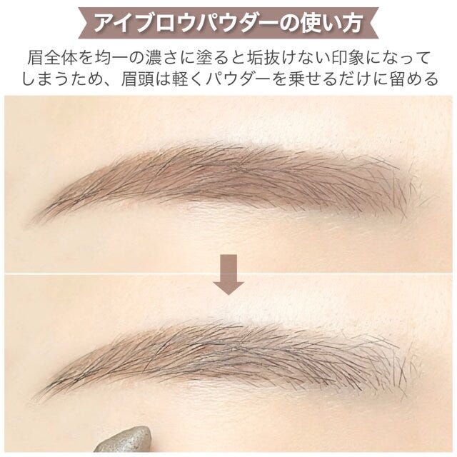 眉尻側からパウダーを塗り始め、眉頭は余ったパウダーで軽く整える程度でOKです。