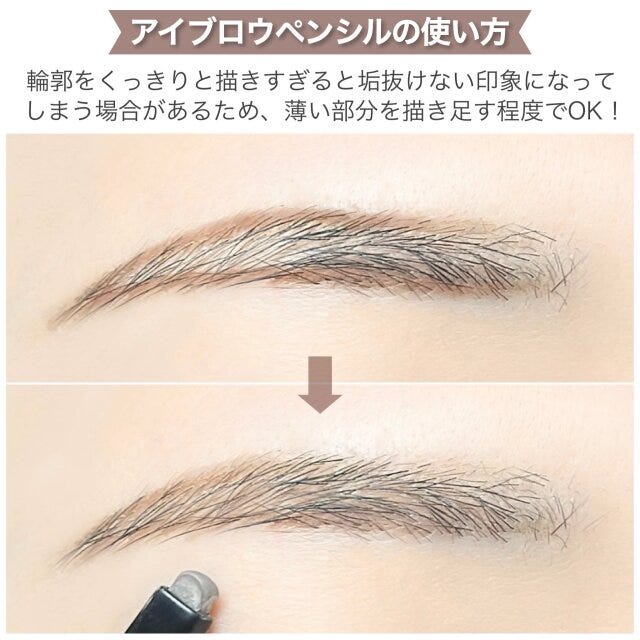 はっきりしすぎた眉は抜け感がなくなってしまうため、アイブロウペンシルは眉の薄い部分を描き足すようなイメージでポイント使いするのが正解です。