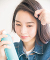 (3)毛先のカールをなじませたら、スプレーを根元と毛先に軽く吹きつける
