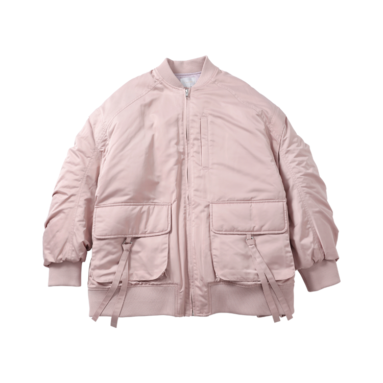黄み系ピンクで顔映え!ボリューム感のあるブルゾンは締まるボトムと相性抜群♡