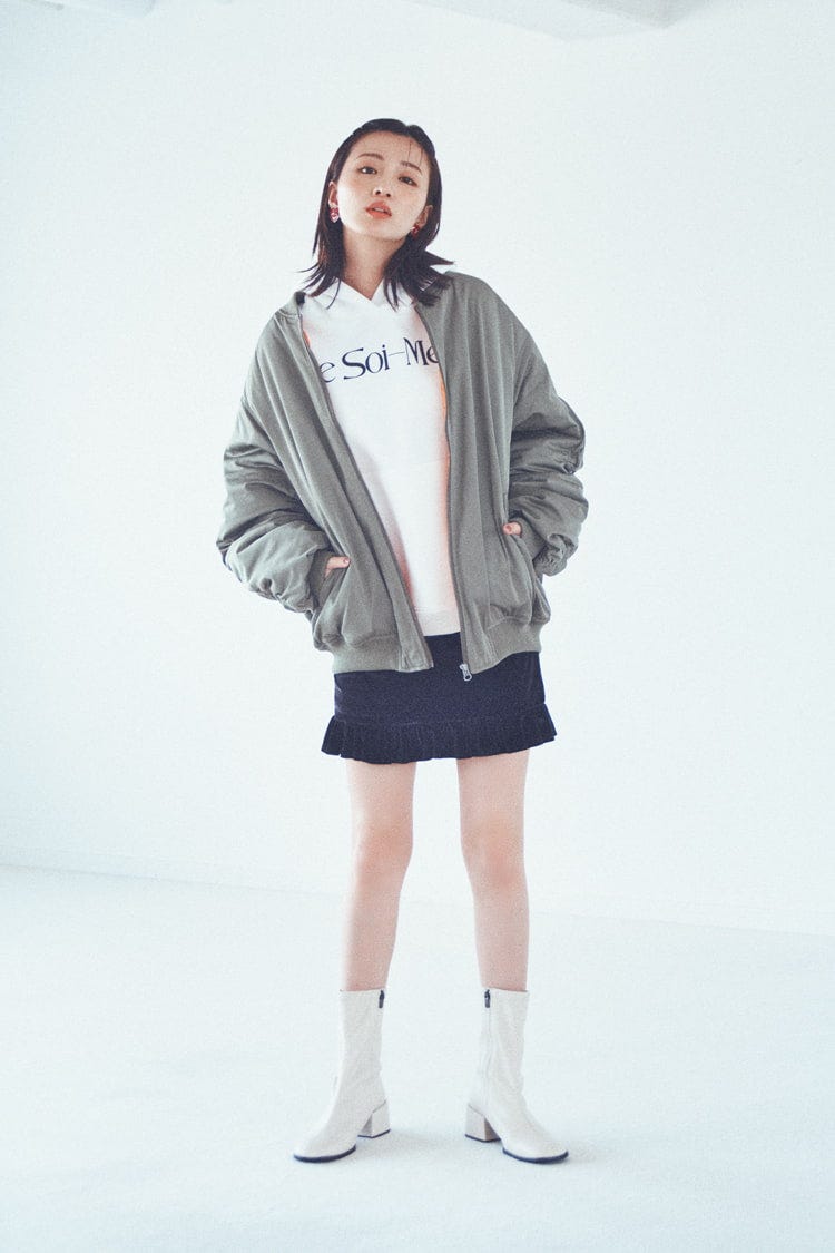 おしりの隠れるMA‐1でミニの色気をやわらげる。ミニスカはストリートにまとめれば、女のコらしすぎず着こなしやすい◎。