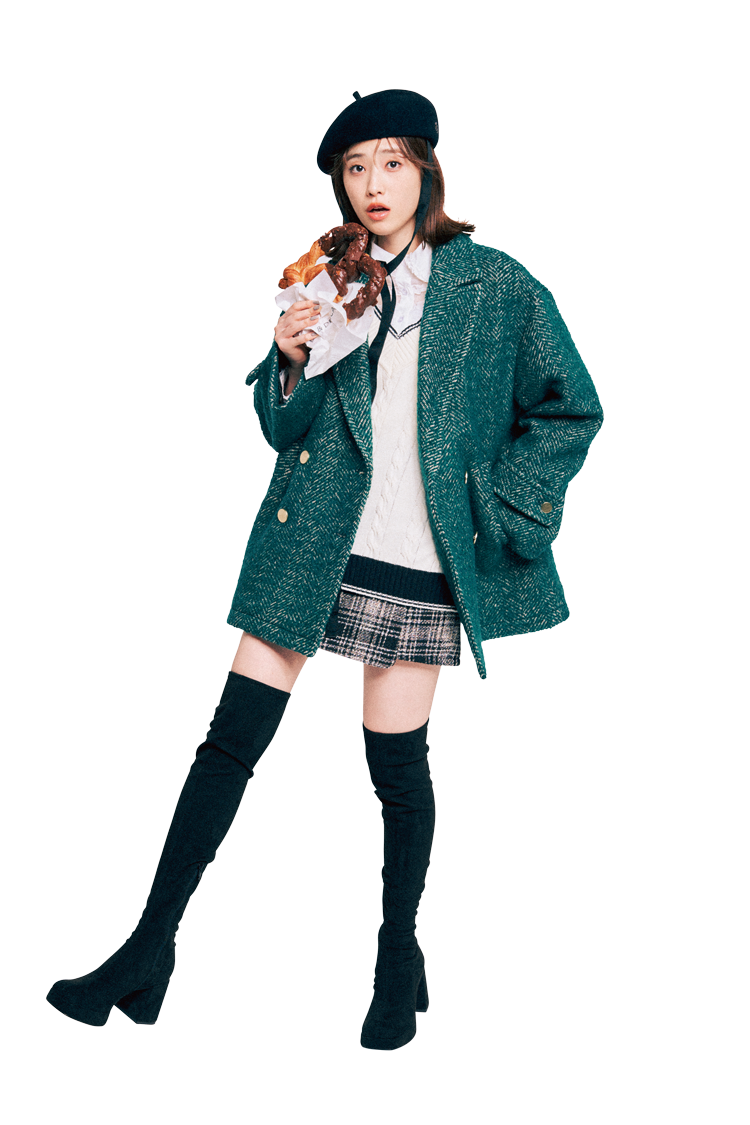 グリーンツイードコート 27,500円/レイ ビームス、ニットベスト 22,000円/フレッドペリー×レイ ビームス(ともにレイ ビームス 新宿) 白フリルブラウス 11,800円/Treat Ürself キュロットパンツ 13,530円/SNIDEL ベレー帽 33,000円/arth(OVERRIDE 神宮前店) ニーハイブーツ 15,900円/チャールズ&キース(チャールズ&キース ジャパン) Coordinate2すっきり見えするニットミニコーデアーガイルニットはコンパクトなサイズ感ですっきりと♡ ニットミニで女みを効かせて、子ども見えを回避。