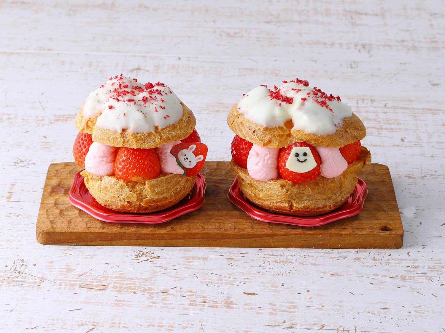 栃木県の新品種「とちあいか」をたっぷり使った、とっても可愛いシュークリーム。ホワイトチョコといちごのパウダーを上にトッピングしている。酸味が少なく、甘みが際立つ「とちあいか」とホワイトチョコの相性の良さを楽しめる一品。