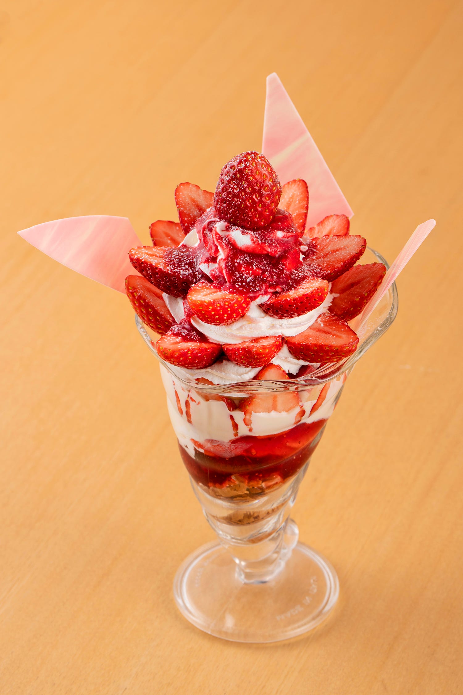 茶寮伊勢 藤次郎から、甘酸っぱいいちごを6個分贅沢にトッピングした苺パフェが登場。濃厚なアイスと芳醇な純生クリームが、甘いいちごとマッチする。一年中で冬が最も美味しいと言われるいちごを美しいビジュアルと共に楽しめるパフェ。