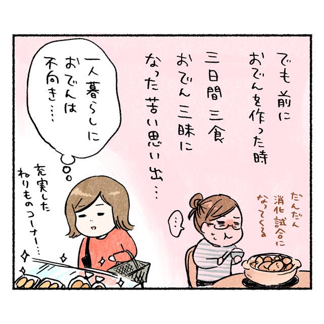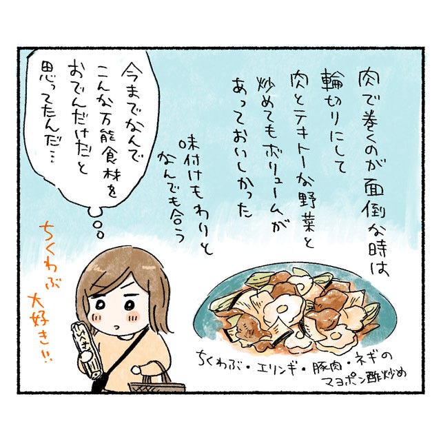 でも一人暮らしでのおでんは作るのも食べる切るのも大変…。そこで、おでん以外のちくわぶレシピを試してみたミツコさんですが…