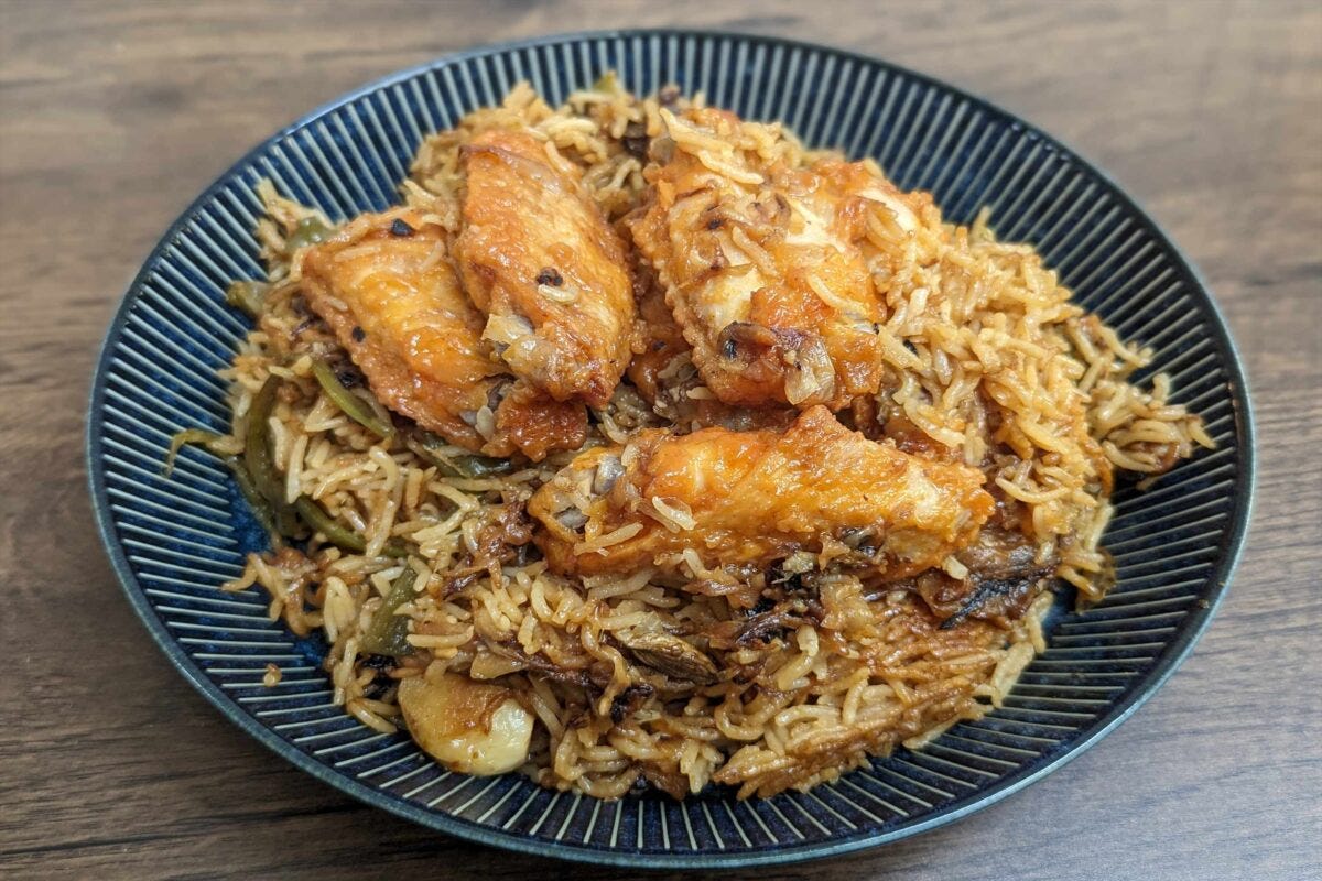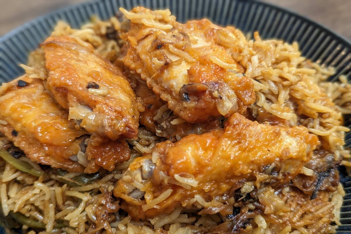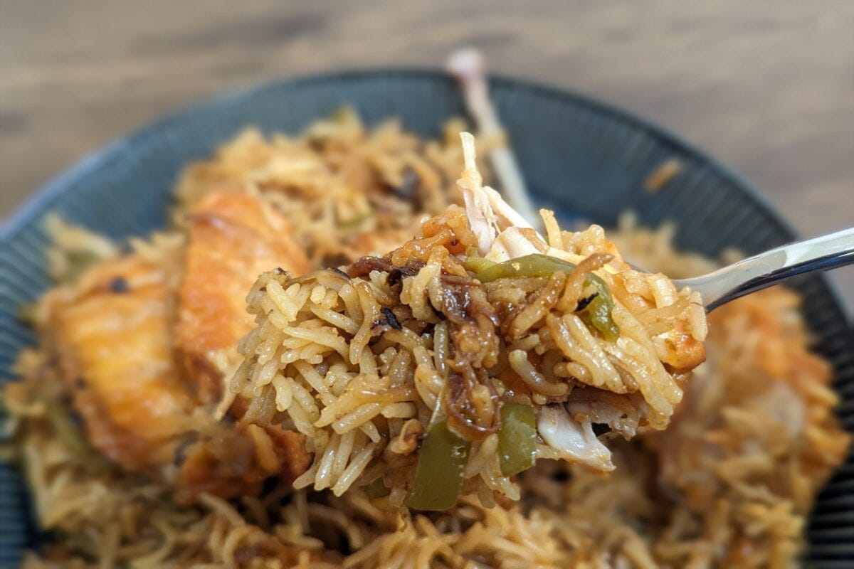 辛味チキンにもスパイスが使用されているため、ビリヤニスパイスと合わさるとさらに良い香りが漂う。