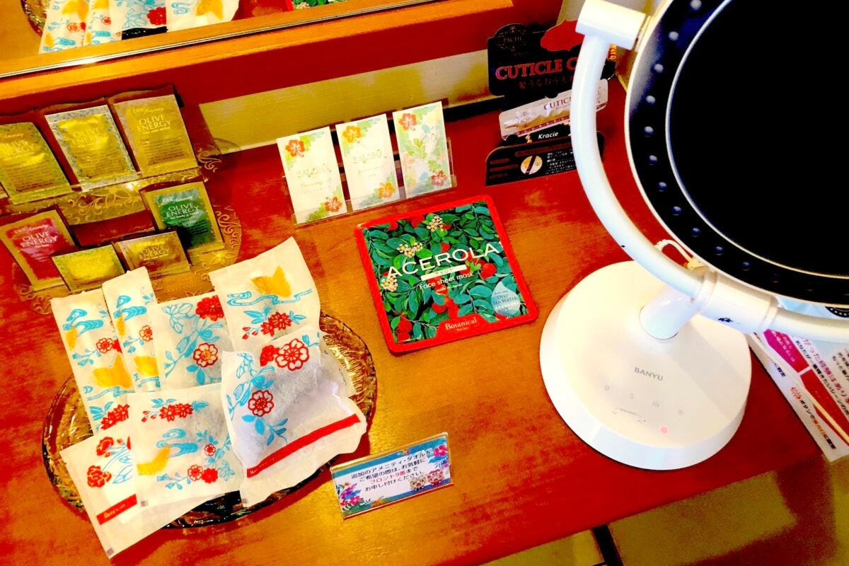 琉球よもぎや青パパイヤ、ハイビスカス、島豆乳の化粧水やチュラコスのオールインワンジェルなど沖縄コスメも無料レンタル可能。