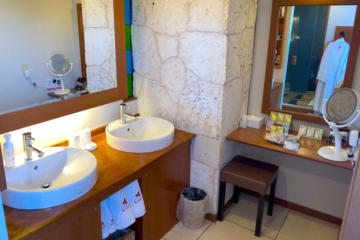 アメニティも豊富で、マンゴーの香りが特徴の『SAHALO』やDHCのスキンケアラインがパウチであり、ハンドミルク、ヘアミルク以外にも沖縄『Ryu SPA』のスキンケアラインがボトルであります。