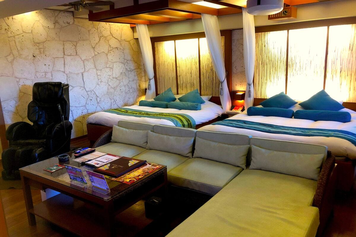 写真は女子会で予約すると用意される『ちゅらプレミアムタイプ』の406号室。