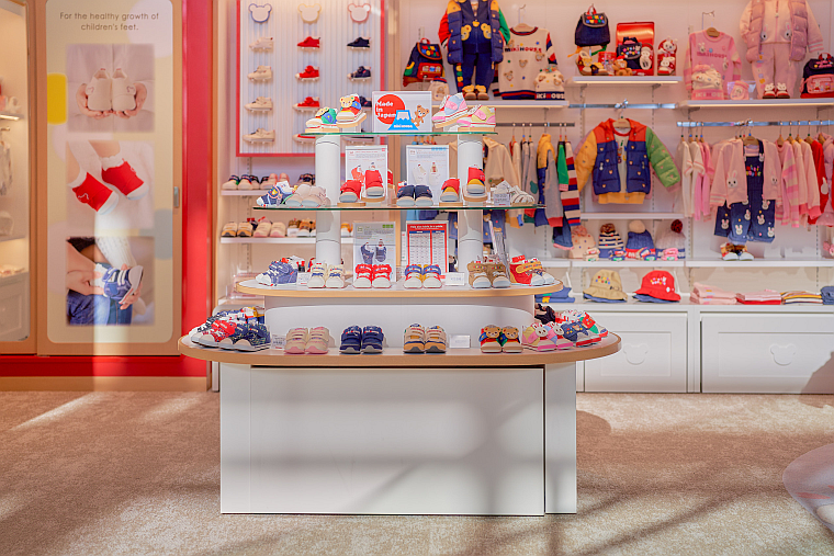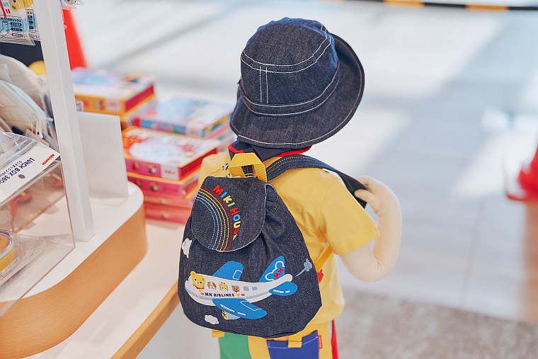 売り場面積は46平方メートル。朝日エアポートサービス(大阪府豊中市)が運営、販売を担う。人気の日本製シューズや、飛行機をモチーフにしたリュックなどの空港限定品、甚平やスキンケアなど、お土産にも適した商品を揃える。ミキハウスのキャラクターのオリジナルステッカーが入ったカプセルトイも設置する。